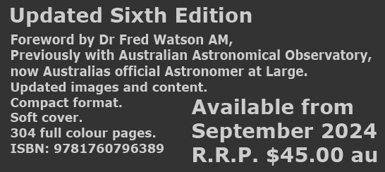 If you ever needed a book to help you explore the wonderful night skies from down under, be it Australia, South America, South Africa or New Zealand, this is it!. With hundreds of full colour star charts and maps of the Moon and planets of our Solar System, this book will ensure you get the most out of a pair of binoculars or a small telescope from suburban and dark country sky locations.