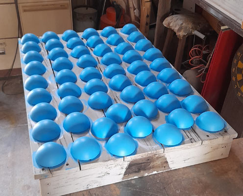I then made a silicon mold and produced the 56 half balls without much trouble. Painted blue.
