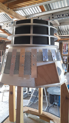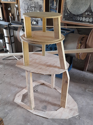Plywood for the bottom section and timber for the base skirt.
