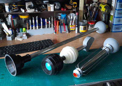 It took a while to figure out how to actually make the parts. I had tried making fiberglass pieces in the past without much success, so I decided on plaster casting for the balls and dome parts... a lot cheaper too. But first, I made some 3D printed parts... at least I knew what I was doing there.