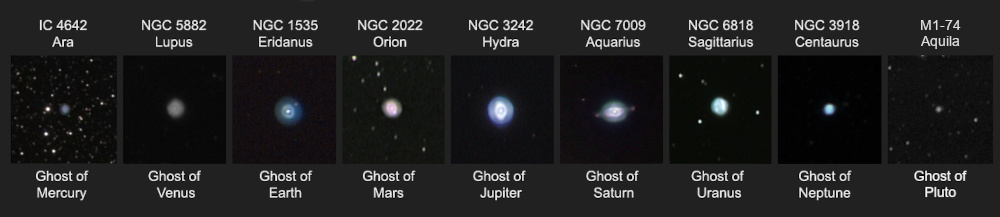 known as the 'Ghost of Jupiter' and NGC 7009 with its ansae, resembles