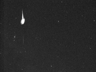 The meteor at top peaking in brightness at -3.2. This is quite rare to see two on the same path.