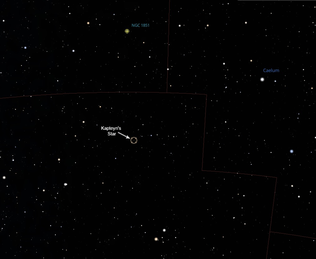 Kapteyn's star is just over 5 degrees S of NGC1851.