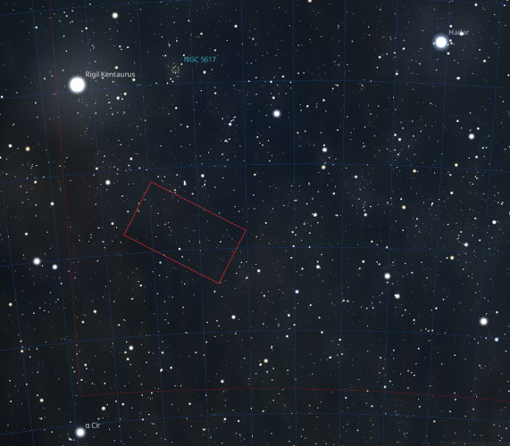 Coordinates 22 Jun 2025: RA 14h 31m 33.9s Dec - 62d 47m 21.1s