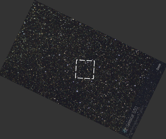 8cm f5 refractor, FOV 55' x 42'. Barnard's Star arrowed.