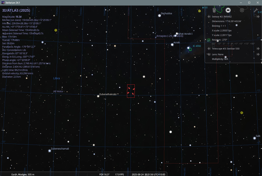 2025-Aug-24 11:00UT RA 15 48 20.20 Dec -15 19 38.1 Magnitude 16.352